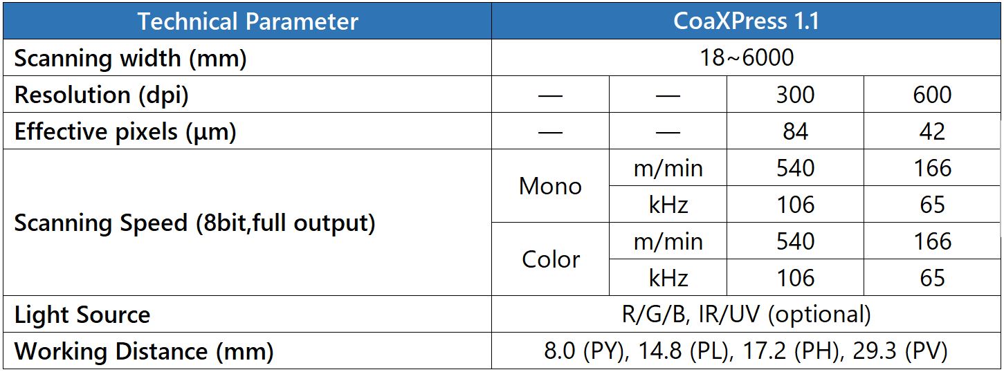 CIS line scan camera highly integrates image sensors, light sources, lenses, and processing circuits, providing excellent stability and vibration resistance, and is suitable for narrow installation spaces. Its imaging principle is to acquire 1:1 images, thus avoiding deficiencies such as edge blurring and image distortion. This can greatly improve the efficiency of installation, debugging, and maintenance, saving costs for customers. WHEC CoaXPress CIS is now widely used in machine vision fields, such as Web inspection, Battery inspection, Printing inspection, etc.
