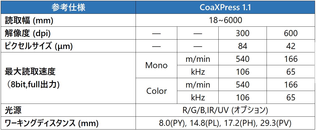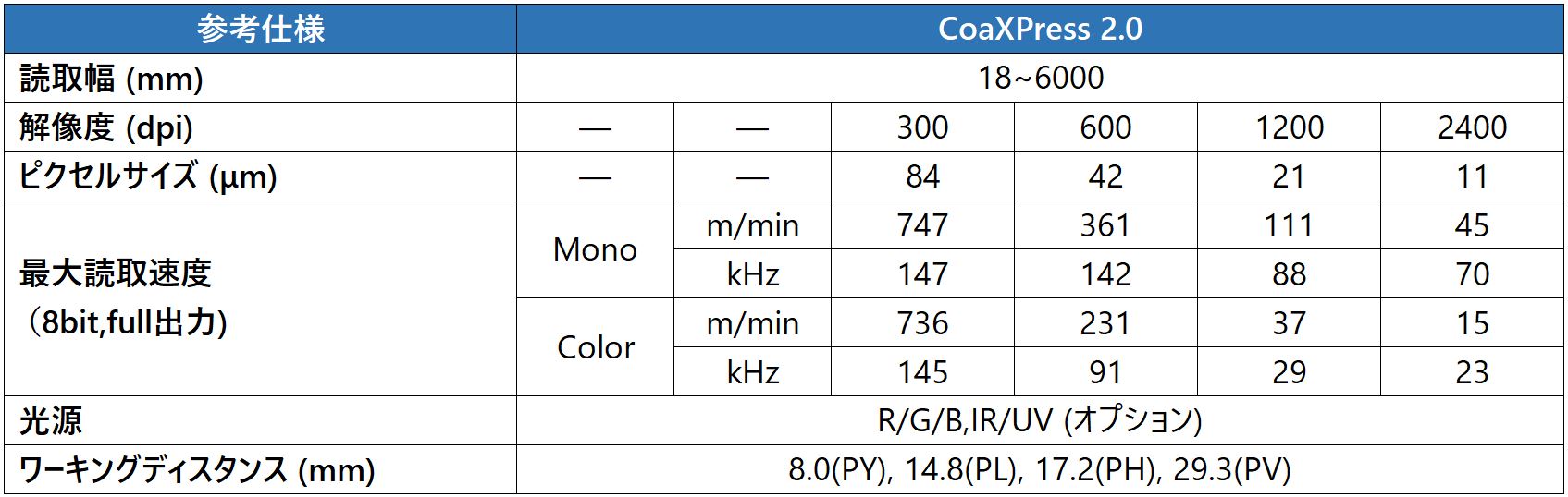 インターフェース:CXP1.1/CXP2.0(選択可)